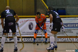 In hoc signo… Vinces! E il segno stasera è quello di Massimo l’Imperatore, comandante di un gruppo di uomini che non si arrende mai fino alla fine… E’ la vittoria di un gruppo dedito al lavoro e al sacrificio, che ha messo in pista tutto quello che aveva per dimenticare il tonfo ancora roboante del sabato di coppa e che a tratti ha vinto non solo contro il Trissino ma anche contro gli arbitri: non si ha timore di dire che il duo Carmazzi-Galoppi è bocciato su tutta la linea, due arbitri che hanno sbagliato da ambo le parti e che hanno letteralmente inventato la punizione dalla quale è scaturito il pari di Nicoletti per poi mandare sul diretto Pallares per il momentaneo vantaggio del 2-1 sul decimo fallo valdagnese che definire dubbio è un eufemismo, forse nel regolamento esiste un fallo per perdita di stecca volante, mah! Comunque sia è giusto che sia stato il Capitano alla fine a caricarsi la squadra sulle spalle, decidendo il derby della valle con un assist “no-look” da urlo per Ordoñez per il momentaneo 3-3, e poi a sfidare la gravità come piace fare a lui giusto per far arrivare fino alle tonsille i cuori dei supporters valdagnesi accorsi in massa… Valdagno al cardiopalma quindi, a decidere il match a soli 45” dalla sirena, non c’era modo migliore di avere ragione dei tanto odiati (sportivamente parlando) rivali trissinesi, anche loro stasera compatti e numerosi che forse già pregustavano la vittoria rimasta invece sullo stomaco indigesta da far passare la notte in bianco… Chi invece farà sogni assai dolci è proprio Valdagno che arriva a Trissino con le scorie francesi da dover scacciare in fretta e che si presenta con Cunegatti tra i pali (più che un “gatto” stasera sembrava un blindato dell’Esercito!) difesa impostata su Ghirardello e Lopez e davanti capitan Tataranni con Ordoñez; De Gerone risponde mandando in pista Edy Nicoletti in porta, Rigo e Diego Nicoletti (il grande ex della serata) nelle retrovie e in attacco Pallares con Bertinato. Pronti via e Valdagno comincia subito a prendere le misure con Lopez e Tataranni, risponde il Trissino con qualche sfuriata di Diego Nicoletti e Pallares senza però che nessuno trovi la via del gol; al 4’ il Valdagno passa: in ripartenza tre contro due Tataranni scarica su Ordoñez che è libero di presentarsi tutto solo davanti a Edy Nicoletti per trafiggerlo in velocità sotto il primo incrocio, 0-1! La risposta dei padroni di casa non si fa attendere raggiungendo l’apice della pericolosità al minuto 12 quando Rigo colpisce il montante; il ritmo in pista è alto ma le continue ripartenze da una parte all’altra non producono gli effetti sperati, merito anche dei due estremi difensori che chiudono ottimamente tutti gli spazi impedendo così al tabellone di muoversi e mandando le squadre all’intervallo sullo 0-1. Ripresa, ed è subito giallo: Rigo porta via pallina a Ordoñez e riparte, Lucas è bravo e lesto a inseguirlo e a “scipparla” da dietro, pallina piena non per Carmazzi che fischia il fallo: pura invezione! Trissino batte e la retroguardia laniera si fa sorprendere da Diego Nicoletti che scarica sotto traversa l’1-1. Al 6’ Valdagno avrebbe l’occasione per raddoppiare sul diretto per il decimo fallo trissinese, Ordoñez non trova però la via del gol; gli ospiti sprecano anche il penalty per fallo su Oruste che bomber Tata si fa parare da Edy Nicoletti. Chi non fallisce la ghiotta occasione (e il regalo arbitrale!) è proprio il Trissino: a Tataranni viene tranciata di netto la mano, il capitano perde la stecca che vola via… Decimo fallo Valdagno, incomprensibile! Pallares è poi bravo a realizzare fintando Cune prima sul suo palo, per poi spostarsi prendendolo in controtempo e infilandolo proprio sul suo palo, 2-1. A questo punto il peso e le fatiche di coppa iniziano a sentirsi e sugli spalti i locali odorano l’impresa, non hanno fatto i conti però con l’ex di turno, stasera per l’occasione bersagliato a più non posso, che a dieci dalla fine incanta: Ordoñez recupera sfera e lancia il contropiede, Massimo s’invola verso Edy Nicoletti che però non si fa ingannare dalle finte del materano, a questo punto il numero 8 valdagnese è costretto a sterzare verso destra, l’estremo difensore fa quel movimento per seguirlo che gli è fatale, Tata, a questo punto in linea con i pali della porta, s’inventa un rientrante a giro calcistico che si spegne sul palo lungo, 2-2 e magia pura! A 6’ dalla fine la ghiotta chance: ancora Massimo si presenta sul diretto per il 15 fallo del Trissino, finte e contro finte alle quali Edy Nicoletti non abbocca ipnotizzando il bomber lucano e strappandogli la pallina allungando la stecca… Il cronometro scorre inesorabile e quando tutto lascia presagire a un “pari e patta” ecco che negli ultimi 2’ succede quello che non t’aspetti: Trissino si butta in avanti alla disperata ricerca dei tre punti, Cune è costretto agli straordinari per sventare e alzare pallina, quando la sfera ricade il numero 10 valdagnese cerca di allontanarla servendola involontariamente a Bertinato che come un condor e a porta praticamente sguarnita non può proprio sbagliare infilando di potenza e precisione sotto la traversa, 3-2 e delirio locale… Pallina al centro, e Massimo l’Imperatore divulga il verbo: in posizione decentrata a 1’ e 48” dalla fine, proprio sotto il settore ospite e forse proprio per tal motivo, capitan Tata saluta con lo sguardo i suoi tifosi guardandoli negli occhi uno per uno, “peccato” però che mentre lo stia facendo inventi un assist d’oro per Ordoñez che in corsa buca Edy Nicoletti per il 3-3, fantascienza! Il tripudio a 45” dalla fine: Tata si trova ancora una volta a tu per tu con Edy Nicoletti che ancora una volta non ha nessuna intenzione di abdicare alle sue finte, però siccome per Massimo “Il Grande” la gravità non esiste ecco che allora la piccola sfera nera inizia a fluttuare nel vuoto prima che si ad