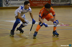 in Quanta grinta questo Valdagno… Dopo la batosta di Forte dei Marmi serviva una risposta… E’ arrivata… Chiara… Netta… I biancoazzurri di Vanzo hanno dovuto spingere, dare tutto fino all’ultimo contro un coriaceo Follonica: si sapeva che il match era di quelli da non sottovalutare visto la fin qui ottima annata dei ragazzi di Polverini e il pesante passivo versiliese da rimediare e cancellare in fretta; una vittoria che dà quindi morale e fa classifica in vista del doppio, delicato impegno in trasferta, dapprima nel sabato di Eurolega in Francia contro La Vendéenne, e poi il martedì successivo nel derby in quel di Trissino… A dare ulteriore lustro all’incontro gli ex Ordoñez e Rodriguez, entrambi marcatori nella serata che vede il Follonica presentarsi al PalaLido con Menichetti tra i pali, in difesa Polverini con appunto Rodriguez, e davanti il duo Federico e Marco Pagnini; risponde Valdagno mandando in pista Cunegatti in porta, il pacchetto arretrato formato da Lopez e Ghirardello e in attacco Oruste e Ordoñez. Pronti via e a 1’ e 39” padroni di casa vicinissimi al vantaggio: è proprio Ordoñez a servire per l’accorrente Ghirardello, l’esterno della rete dà solo l’illusione del gol che fa urlare, traendo in inganno, gli spettatori presenti; la risposta ospite è tremenda complice anche un po’ di sfortuna: a 3’ e 37” la cannonata di Lopez sbatte sulle balaustre della pista come un flipper trasformandosi in un letale assist per Polverini, in contropiede e con la retroguardia scoperta il numero 6 serve il liberissimo Federico Pagnini che ha il tempo di bucare il “gatto” sul suo palo, 0-1. A 5’ e 18” ancora Cune è bravo a riscattarsi e a sbarrare la strada a Marco Pagnini, mentre a 8’ e 52” ancora Federico Pagnini ben imbeccato centra il palo; in questa piena maremmana Valdagno pare frastornato e spara a salve dalla lunga distanza e quando costruisce ci si mette di mezzo anche la cattiva sorte, come a 7’ e 39” quando Ordoñez di rapina ruba pallina in mezzo all’area e la manda a stamparsi sul montante… A 12’ e 44” il pareggio: è ancora Ordoñez nel ruolo di rifinitore a servire Lopez, il legno questa volta è amico e dopo il “bacino” al ferro la pallina s’insacca, 1-1. A 15’ e 41” il raddoppio ospite: è l’ex Rodriguez a essere lasciato tutto solo a centro a pista, le sue bordate sono ancora un fresco ricordo nelle menti dei tifosi valdagnesi, proprio come quella che non lascia scampo a Cunegatti e che vale l’1-2. A 15’ e 24” la traversa di Ordoñez grida vendetta e soffoca in gola l’urlo del gol, ma a 23’ e 09” proprio il numero 9 tira fuori il coniglio dal cilindro scagliando in rete sul primo palo il 2-2 sul quale le squadre vanno anche la riposo. Ripresa. Al 5’ Tataranni serve Ordoñez ma Menichetti chiude, mentre a 7’ e 10” tutti si dimenticano dell’indisturbato Marco Pagnini che lasciato solo batte Cune per il 2-3. A 6’ e 32” Rodriguez si ricorda forse dei suoi trascorsi in riva all’Agno e alza da due passi, mentre a 10’ e 05” Menichetti chiude bene su capitan Tata ottimamente servito da Lopez; a 10’ e 32” la storia si ripete: Marco Pagnini viene lasciato libero di andare e di infilare Cunegatti alla base del montante, 2-4. Una manciata di secondi dopo Tataranni vince la resistenza di Menichetti ma la pallina non entra per un niente, mentre a 12’ e 28” Bertoldi serve Ordoñez che scarica in rete il 3-4. A 15’ e 09” Follonica allunga ancora: e quasi un cross in stile calcistico quello che Polverini mette in mezzo per l’accorrente Marco Pagnini che al volo infila Cunegatti sul palo lontano, 3-5. Il gol dei maremmani pare sia destinato a tagliare di netto le gambe agli uomini di Vanzo che invece, nel momento di maggior difficoltà, schiantano gli avversari sotto una raffica di gol: il primo ad aprire le danze è Ordoñez, che a 16’ e 26” alza e schiaccia in faccia a Menichetti la punizione di prima per il blu a Polverini, 4-5. Quindi tocca a Cune blindare la porta e dire no ancora a Marco Pagnini; a 18’ e 08” viene ristabilito l’equilibrio: è il capitano Massimo Tataranni a scagliare in rete tutta la rabbia agonistica con tiro potente e preciso che prima di entrare sbatte sul ferro superiore, 5-5. Poi è ancora il “gatto” a salvaguardare su Rodriguez prima che Ordoñez faccia esplodere a 19’ e 50” il PalaLido bucando di precisione Menichetti, 6-5. Ma Valdagno è un autentico fiume in piena e non si ferma: fa tutto l’extraterrestre Lopez, a 20’ e 01”, che coast-to-coast manda la pallina a spegnersi sul secondo palo, accompagnandola e mortificando ancora una volta Menichetti, 7-5! Negli ultimi minuti va in scena invece il Tataranni show: a 21’ e 11” è un gol da capogiro quello che il numero 8 s’inventa sottoporta, con tocco mortale deviante a una mano sul quale non può proprio nulla l’estremo ospite, 8-5. A 3’ dal termine Cunegatti è super a chiudere su Federico Pagnini; un minuto più tardi Follonica arriva a 10 falli ma bomber Tata, che fa tutto benissimo mettendo giù l’1 avversario, non riesce però a segnare… Il match si chiude a 24’ e 53” quando ancora Massimo “il grande” riscrive le leggi della gravità con un’alza schiaccia degno del Louvre con la pallina che abbraccia la rete per il 9-5 finale con il quale Valdagno si congeda dal suo pubblico… Arrivano quindi 3 punti importanti che servono a staccare in classifica proprio il Follonica, la marcia campionato continua…