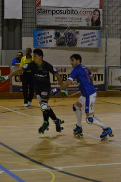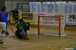 E con questa fanno quattro! Valdagno ingrana la quarta e porta a casa un’altra vittoria (tre in campionato e una in Eurolega) aggiungendo un altro prezioso tassello… Valdagno che diverte e fa soffrire, mettendo in pista un primo tempo di gran gioco e una ripresa che ha tenuto sulle spine fino al cinquantesimo i supporters del PalaLido; biancoazzurri che non si fanno mancare proprio niente dunque, nemmeno quei tre punti che alla fine sono la cosa più importante… Di fronte un Giovinazzo che resta “al palo” (non solo per modo di dire visto che il ferro colpito da Fontan sul finire del match poteva valere un punto prezioso) relegato sul fondo classifica ancora a zero punti in triste compagnia del Prato e che si presenta al PalaLido con Fernandez in porta (altro omonimo di quello già affrontato sabato e del polipo azulgrana), nelle retrovie Turturro e De Palma, in attacco il figliol prodigo Gimenez e D’Agostino; Vanzo risponde a Giudice mandando Cunegatti tra i pali, in difesa Lopez e Ghirardello e davanti Tataranni e Ordoñez. Il primo squillo al match prova a darlo Gimenez in percussione personale ma Cune fa buona guardia, mentre al primo affondo il Valdagno passa: fa tutto Lopez che recupera pallina dalla difesa e si fa tutta la pista prima di scagliare all’incrocio l’1-0. Al 5’ Ordoñez in slalom semina il panico nella difesa pugliese senza trovare però fortuna; al 10’ è sempre lo scatenato argentino in azione solitaria a non trovare la porta per un niente. A 11’ e 33” D’Agostino fa tremare la traversa, i biancoverdi si fermano pensando che la pallina fosse uscita lasciando Ordoñez libero di involarsi e Lucas non spreca servendo alla perfezione Tataranni che insacca, 2-0. A questo punto Valdagno è padrone della gara: è ancora Lopez a provarci ma Fernandez alza bene, poi è capitan Tata che prova a restituire il favore a Ordoñez che non trova però la via del gol; a 13’ e 25” Valdagno cala il tris: il golazo di super Lopez vale da solo il prezzo del biglietto con Tataranni che ha il tempo di servirlo e il numero 6 laniero in totale libertà a un metro dalla porta inventa un alza schiaccia mortifero per l’estremo ospite, 3-0! Al 16’ è il bomber materano ad essere libero di concludere ma Fernandez ci arriva di spalla; a 22’ e 44” gli ospiti accorciano: Gimenez è bravo a pescare sul secondo palo l’indisturbato D’Agostino che deposita in fondo al sacco, 3-1. Ma Valdagno non ci sta: a 23’ e 22” gli uomini di Vanzo mettono in atto un’azione da lavagnetta che vede Bertoldi servire Lopez che scarica per l’accorrente Oruste che buca Fernandez per il 4-1. A 1’ dall’intervallo il gatto è strepitoso su Gimenez mentre la ripresa si apre con un gol arrivato dal nulla e che porta la firma di Ranieri per il 4-2. A 6’ e 38” grossa chance per i padroni di casa: Ordoñez viene sgambettato e mandato sul diretto per la punizione di prima, il numero 9 si alza pallina e schiaccia ma questa volta l’estremo pugliese gli nega il gol; a metà tempo il Giovinazzo spreca una favorevole occasione con Fontan ben servito da D’Agostino, in seguito tocca ai due portieri mettersi in mostra dapprima con Fernandez che ferma il lanciatissimo Ordoñez, poi è la volta del Cune superarsi sul tiro dalla lunga distanza di Gimenez. A 13’ e 58” Giovinazzo si avvicina ulteriormente: Gimenez s’incunea tra le maglie valdagnesi vincendone la resistenza e mettendo in rete il gol del 4-3. I biancoazzurri però reagiscono e allungano nuovamente: sulla pallina servitagli da Ordoñez bomber Tata deve solo mettere dentro e così è, 5-3. Ancora Lopez va in alza schiaccia dal lato corto dell’area ma Fernandez è prodigioso e respinge; a 20’ e 16” Fontan mette in mezzo, Ranieri è bravo a farsi trovare pronto e a siglare il 5-4 che fa tremare il PalaLido… Tocca a Cunegatti salvare il risultato e a dire ancora una volta di no alla conclusione di Gimenez, a 1’ e 20” dal termine è Ordoñez a colpire il montante e su ribaltamento di fronte i legni si trasformano da nemici ad amici dei valdagnesi e che fermano il tiro di Fontan che aveva sparato a botta sicura… Si conclude così la serata per gli uomini di Vanzo, con un grosso spavento e, fortunatamente, nulla più… 3 punti comunque meritati e che muovono ulteriormente la classifica dei vice-campioni d’Italia. E adesso pochi giorni per recuperare: sabato si torna in Versilia a far visita al Forte dei Marmi, remake della finale scudetto e della supercoppa italiana… Impegno duro, ma con un Ordoñez in più e con i giocatori sempre più in sintonia tra di loro i ragazzi di coach Vanzo sono pronti a dare battaglia…