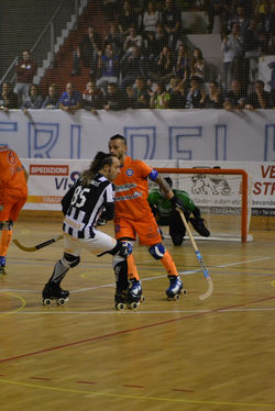 L’ammucchiata bianconera a centro pista a fine partita è tanto indigesta quanto dolorosa. Dolorosa quanto vedere gli unici due supporters viareggini felici e sorridenti giunti fino in Veneto dopo tanti anni di assurdi divieti finalmente decaduti; ecco, forse questa è la nota più positiva di una serata in cui Valdagno non trova la chiave di volta stagionale e non basta il rientro di Ordoñez per avere ragione di un Viareggio che si fa corsaro e si prende, seppur in coabitazione, la vetta della classifica. 3 partite 3 sconfitte: un ruolino di marcia che si fa a questo punto preoccupante dal momento che il cammino negativo rischia clamorosamente di allungarsi visto le prossime due sfide in trasferta a O’Porto in coppa e di nuovo in casa con la corazzata Breganze, 2 impegni che pare adesso sembrino proibitivi per gli uomini di Vanzo che contro il Viareggio possono mandare in pista il rientrante Lucas affiancato da bomber Tata in attacco sorretti da Lopez e Ghirardello in difesa e da Cunegatti tra i pali; risponde il Cgc del neo allenatore-giocatore Alessandro Bertolucci con Barozzi in porta, Montigel e Palagi in difesa, Mirko Bertolucci e Muglia in attacco. Le due squadre si affrontano a specchio nei primi minuti con gli arancioni valdagnesi che sembrano però aver maggior controllo; inaspettatamente al 12’ Viareggio passa: è il tocco beffardo di Muglia a portare gli ospiti in vantaggio, 0-1. Il gol subito ha l’effetto di una mazzata per Tata e compagni: Montigel si libera in area e centra, Cune è battuto: 0-2. Ancora Montigel, ancora gol, 0-3. Valdagno sembra inerme e senza idee, ma un sussulto di Ordoñez che spara sul primo palo riapre le danze per l’1-3; ripresa e sembra che la musica sia destinata a cambiare: Montigel si prende il blu e sul diretto ci va capitan Tata che trafigge Barozzi e fa 2-3. I padroni di casa odorano la preda e il blu a Mirko Bertolucci sembra il preludio per qualcosa di buono: quel “qualcosa” che si materializza quando a 12’ e 39” Tataranni fa una magia delle sue in girata, questa non si para e Barozzi alza bandiera bianca, 3-3. Tre minuti dopo il fattaccio: Ghirardello sta dietro a Montigel che si lascia cadere, è il decimo fallo che manda sul diretto Viareggio e Mirko Bertolucci; Cunegatti respinge ma sulla ribattuta viene concesso un inspiegabile rigore che lo stesso Montigel realizza per il 4-3 finale. La luce si spegne al PalaLido sul blu rifilato a Lopez in chiusura di gara che manda i 3 punti verso la Toscana… Un altro triste finale per i biancoazzurri attesi adesso dall’impegno in Portogallo: chissà che l’aria d’Europa non sia da stimolo e possa giovare per ritrovare il sorriso…